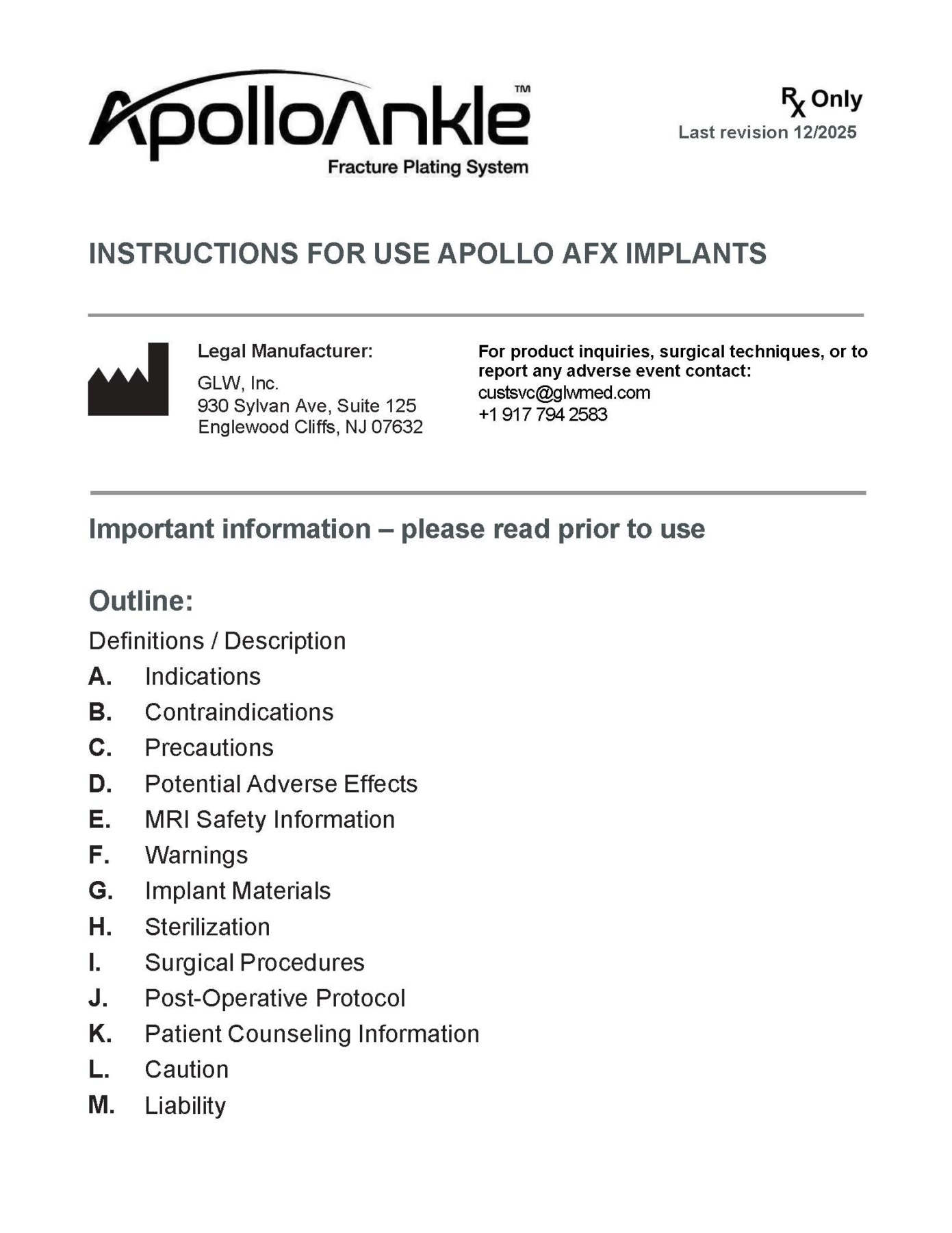 Apollo AFX Implants – IFU